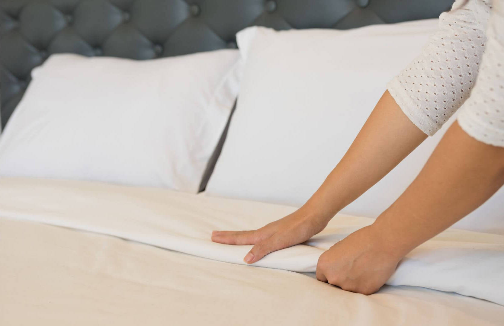 For example, the average linen delivery price for an AirBnB property with one queen bed is around $29 per guest booking. This price includes delivery and pick-up fees, hotel grade linen rental, and the laundry fee for queen-sized fitted sheet, flat sheet, doona cover, 4 pillow cases, two bath towels, bath mat, two kitchen towels, and two hand towels.